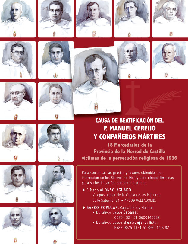 Hace ya varios años se encuentra abierta la causa de beatificación de 18 frailes de la Provincia de la Merced de Castilla. De estos, 5 eran de la comunidad de Herencia (los de la parte inferior del cartel):