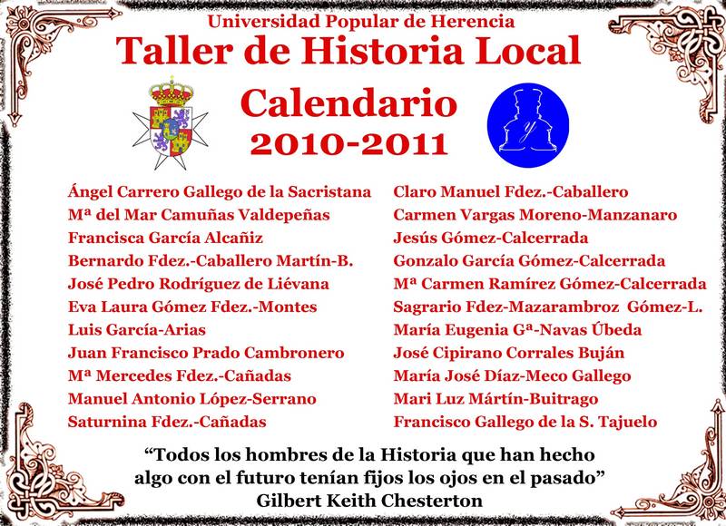 CALENDARIO Enero Febrero - Taller de Historia Local de la Universidad Popular. Curso 2010-2011