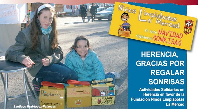 Ahora, en la última revista de La Merced-Caminos de Liberación, dirigida por el padre mercedario, Mario Alonso Aguado, que durante muchos años estuviera en nuestra localidad y que tanto trabajara por recuperar la Historia y el Patrimonio de Herencia, aparece un artículo en el cual el padre Santiago Rodríguez-Palancas da las gracias su pueblo por «Regalar Sonrisas» en favor de la Fundación Niños Limpiabotas-La Merced.