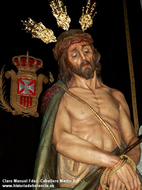 La representación de la talla es la de Ecce Homo o Cristo presentado al pueblo. Este episodio de la pasión del Señor lo sitúa el evangelista San Juan, después de la coronación de espinas Cfr. Jn. 19, 4ss. Pilato presenta a Jesús, ante la multitud que se había reunido ante el pretorio, diciendo “Ahí tenéis al hombre” (Ecce Homo). Al verle, los sacerdotes y sus servidores gritaron: “¡Crucificale, crucificale! (Tolle, crucifigie). La multitud, rechaza, humilla y grita su muerte. Este tema se difundió ya en el arte del siglo XV, al final de la Edad Media. Normalmente Jesús es expuesto sobre un estrado o en lo alto de una escalera exterior, coronado de espinas, el manto de color púrpura y el cetro de caño sostenido entre las manos atadas; patética imagen llena de contrasentido, la de Jesús vestido de rey de forma lastimosa y humillada, presentado como un malhechor siendo el Hijo de Dios; como un embustero, siendo la Verdad. Es el Varón de Dolores, el Cristo mercedario, el Cristo de la Merced Redentora, que ofrece Visita y Consuelo a cuantos padecen cautividad y opresión.