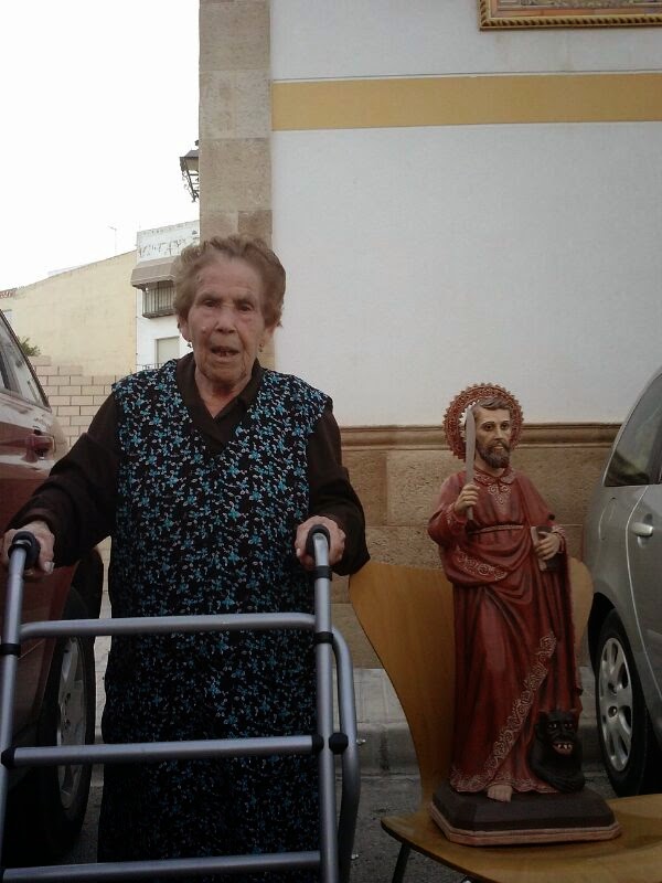 Catalina Rodríguez de Tembleque ha estado a disposición de la ermita prácticamente toda su vida. Ahora, haciendo honor a su trabajo dona una réplica de San Bartolomé que quedará para la historia, para que los que vengan sepan de su trabajo, sepan que hubo una mujer que dedicó su tiempo al cuidado de esta ermita. Esta réplica dejará constancia de todos los momentos que ella ha acompañado a su ermita, a su San Bartolomé, horas y horas de su vida dedicadas a su culto.