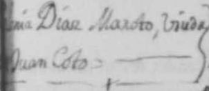 Juan Cotillo se casó en segunda nupcias con Apolonia Díaz-Maroto (con una importante diferencia de edad entre ambos contrayentes). Cuando ésta falleció, ya viuda, el 6 de Noviembre de 1773, a los 75 años, en el apunte de su defunción vemos que ya aparece el apellido Coto. La transformación del apellido ya había sucedido.