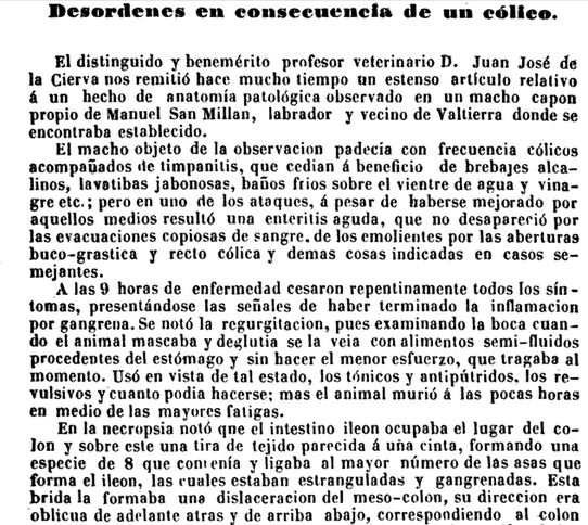 Adjunto el recorte del Boletín donde aparece un resumen del escrito que presentó Juan José de la Cierva, por lo curioso (para la mayoría de los mortales, profanos en el ámbito de la ciencia veterinaria):