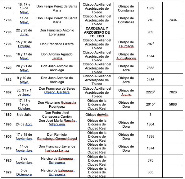 [4] ALMEIDA, Salustiano.“Memoria para lo futuro de la Venida del Señor Arzobispo de Toledo el Señor Cardenal Don Francisco Lorenzana”; Archivo Diocesano de Ciudad Real.