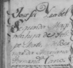 Detalle de la partida de bautismo de la Herenciana Josefa Isabel Mate[2].
