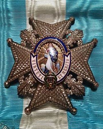 Cruz de la Orden de Carlos III, que recibiera el hijo de la herenciana Isabel Josefa Mate. Se puede observar el lema “virtuti et merito (virtud y mérito)[5].